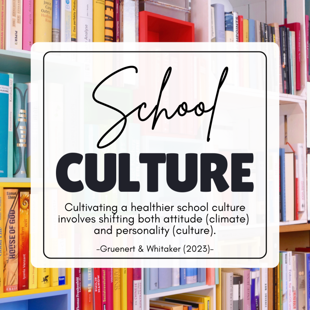 Culture and climate are not synonyms. Gruenert and Whitaker (2023) stated, “Cultivating a healthier school culture involves shifting both attitude (climate) and personality (culture).” In their recent article, these author distinguish the difference between school climate and school culture. It is important for school leaders to understand the difference and importance of both. When implementing professional learning communities (PLCs), the focus is on building a positive school culture. A school’s culture is based on it’s values and beliefs. The culture is who you are as a learning organization and determines if school improvement is even possible. Culture takes time to build but is essential for high performing teams to lead the work of PLCs. According to Ward (2015), examples of a healthy culture include: